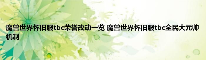 魔兽世界怀旧服tbc全民大元帅是什么?魔兽世界怀旧服tbc版本已经开启,这次的版本更新对比当年,在荣誉系统上还是有一下改变的。这就是全民大元帅的由来。如果大家还不清晰具体的改动的话,下面就是具体的改动一览了。