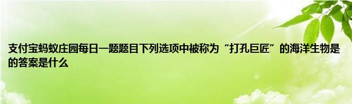 今天弟哥来聊聊一篇关于支付宝蚂蚁庄园每日一题题目下列选项中被称为“打孔巨匠”的海洋生物是的答案是什么的文章,游戏是很多人的选择,但是游戏玩多了也会身心疲惫,现在就为大家来简单介绍下支付宝蚂蚁庄园每日一题题目下列选项中被称为“打孔巨匠”的海洋生物是的答案是什么,希望对各位小伙伴们有所帮助。
