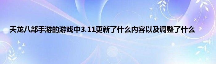 今天弟哥来聊聊一篇关于天龙八部手游的游戏中3.11更新了什么内容以及调整了什么的文章,游戏是很多人的选择,但是游戏玩多了也会身心疲惫,现在就为大家来简单介绍下天龙八部手游的游戏中3.11更新了什么内容以及调整了什么,希望对各位小伙伴们有所帮助。