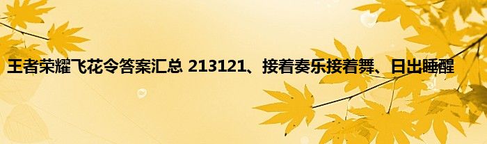 王者荣耀飞花令答案汇总 213121是哪个英雄