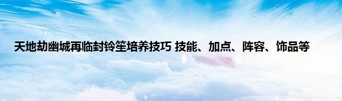 天地劫幽城再临封铃笙解析与培养