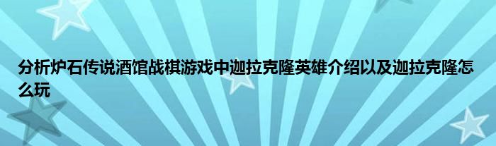 今天弟哥来聊聊一篇关于分析炉石传说酒馆战棋游戏中迦拉克隆英雄介绍以及迦拉克隆怎么玩的文章,游戏是很多人的选择,但是游戏玩多了也会身心疲惫,现在就为大家来简单介绍下分析炉石传说酒馆战棋游戏中迦拉克隆英雄介绍以及迦拉克隆怎么玩,希望对各位小伙伴们有所帮助。