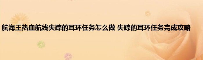 航海王热血航线失踪的耳环怎么做?