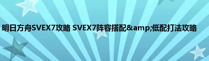 明日方舟SVEX7通关阵容&打法技巧