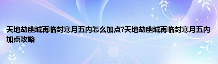 天地劫幽城再临封寒月五内怎么加点?很多玩家都想知道,封寒月五内怎么加点比较好。下面蚕豆君给大家带来天地劫幽城再临封寒月五内加点推荐,感兴趣的玩家一起来看看吧。