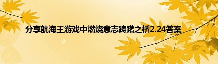 相信通过分享航海王游戏中燃烧意志踌躇之桥2.24答案这篇文章能帮到你,也欢迎对游戏很感兴趣小伙伴们一起来探讨。