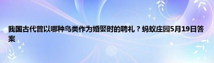我国古代曾以哪种鸟类作为婚娶时的聘礼?这是蚂蚁庄园小课堂5月19日的问题,这次的问题难度难度很高,而答对题目以后我们才可以领取小鸡饲料。不知道答案的朋友不妨看看具体的答案和详细的答案解析吧。