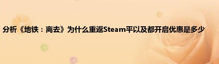 《地铁:离去》重返Steam平台 开启6折优惠仅售119元