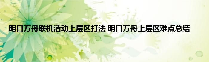 明日方舟联机活动上层机关区应该怎么打?明日方舟新的活动已经开启,这次的新活动中玩家分为上层和下层可以打。其中上层的难度比较高,不少的玩家都不清楚具体的打法是什么,这里就总结了一些上层区的具体难点,希望大家喜欢。