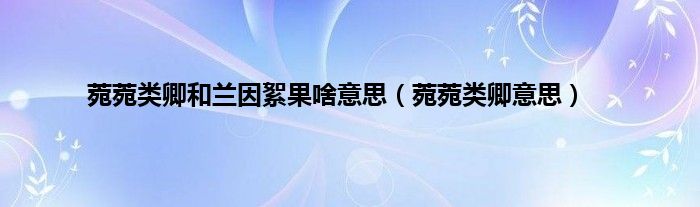 大家好,小科来为大家解答以上问题。菀菀类卿和兰因絮果啥意思,菀菀类卿意思很多人还不知道,现在让我们一起来看看吧!