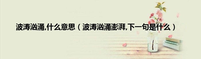 大家好,小科来为大家解答以上问题。波涛汹涌,什么意思,波涛汹涌澎湃,下一句是什么很多人还不知道,现在让我们一起来看看吧!