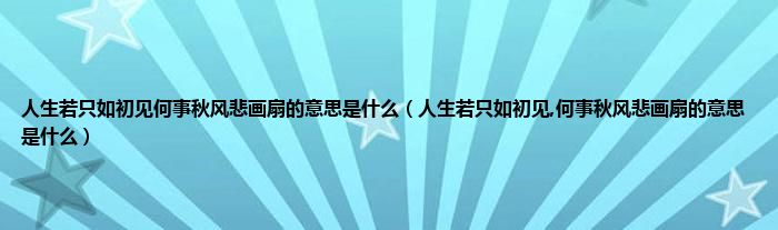 大家好,小科来为大家解答以上问题。人生若只如初见何事秋风悲画扇的意思是什么,人生若只如初见,何事秋风悲画扇的意思是什么很多人还不知道,现在让我们一起来看看吧!