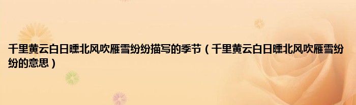 大家好,小科来为大家解答以上问题。千里黄云白日曛北风吹雁雪纷纷描写的季节,千里黄云白日曛北风吹雁雪纷纷的意思很多人还不知道,现在让我们一起来看看吧!