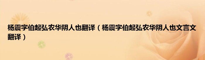 1、 杨震字伯起弘农华阴人也文言文翻译.答案是:杨震是华阴的民营农民。