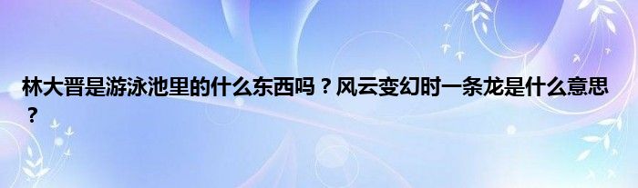 大家好,小科来为大家解答以上问题。林大晋是游泳池里的什么东西吗?风云变幻时一条龙是什么意思?很多人还不知道,现在让我们一起来看看吧!
