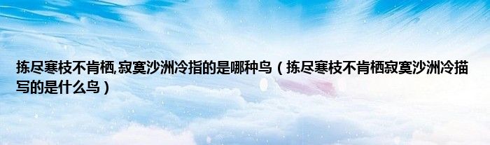 大家好,小科来为大家解答以上问题。拣尽寒枝不肯栖,寂寞沙洲冷指的是哪种鸟,拣尽寒枝不肯栖寂寞沙洲冷描写的是什么鸟很多人还不知道,现在让我们一起来看看吧!