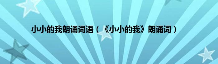 大家好,小科来为大家解答以上问题。小小的我朗诵词语,《小小的我》朗诵词很多人还不知道,现在让我们一起来看看吧!