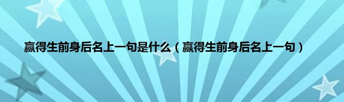 大家好,小科来为大家解答以上问题。赢得生前身后名上一句是什么,赢得生前身后名上一句很多人还不知道,现在让我们一起来看看吧!