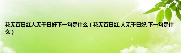 大家好,小科来为大家解答以上问题。花无百日红人无千日好下一句是什么,花无百日红,人无千日好,下一句是什么很多人还不知道,现在让我们一起来看看吧!