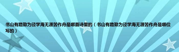 大家好,小科来为大家解答以上问题。书山有路勤为径学海无涯苦作舟是哪首诗里的,书山有路勤为径学海无涯苦作舟是哪位写的很多人还不知道,现在让我们一起来看看吧!