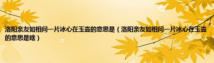 2、 "洛阳亲友如相问,一块冰在玉壶里”。指的是作者在和朋友分手时,对他们的托付。洛阳是指河南洛阳,是唐代政治、经济、文化名城,有作者的亲朋好友。问,像说“问你”,冰心形容一个人的头脑像冰块一样清晰;玉壶,玉做的壶。