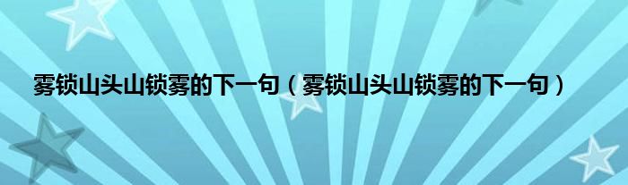 大家好,小科来为大家解答以上问题。雾锁山头山锁雾的下一句,雾锁山头山锁雾的下一句很多人还不知道,现在让我们一起来看看吧!