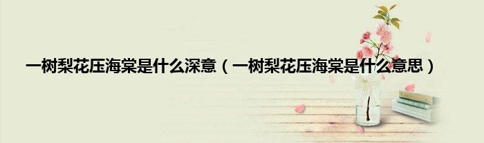 大家好,小科来为大家解答以上问题。一树梨花压海棠是什么深意,一树梨花压海棠是什么意思很多人还不知道,现在让我们一起来看看吧!