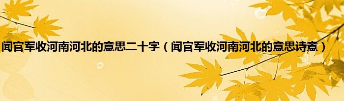 大家好,小科来为大家解答以上问题。闻官军收河南河北的意思二十字,闻官军收河南河北的意思诗意很多人还不知道,现在让我们一起来看看吧!