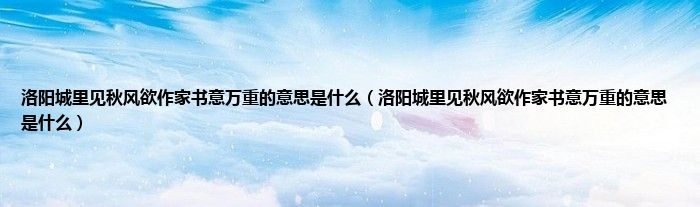 大家好,小科来为大家解答以上问题。洛阳城里见秋风欲作家书意万重的意思是什么,洛阳城里见秋风欲作家书意万重的意思是什么很多人还不知道,现在让我们一起来看看吧!