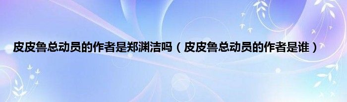 大家好,小科来为大家解答以上问题。皮皮鲁总动员的作者是郑渊洁吗,皮皮鲁总动员的作者是谁很多人还不知道,现在让我们一起来看看吧!