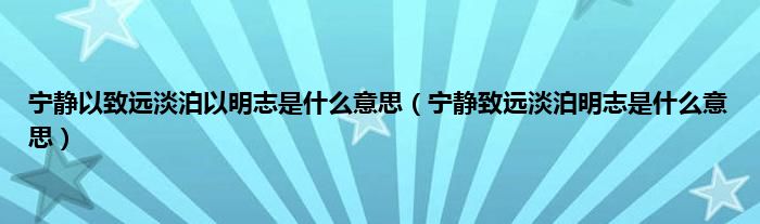 大家好,小科来为大家解答以上问题。宁静以致远淡泊以明志是什么意思,宁静致远淡泊明志是什么意思很多人还不知道,现在让我们一起来看看吧!