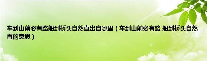 大家好,小科来为大家解答以上问题。车到山前必有路船到桥头自然直出自哪里,车到山前必有路,船到桥头自然直的意思很多人还不知道,现在让我们一起来看看吧!