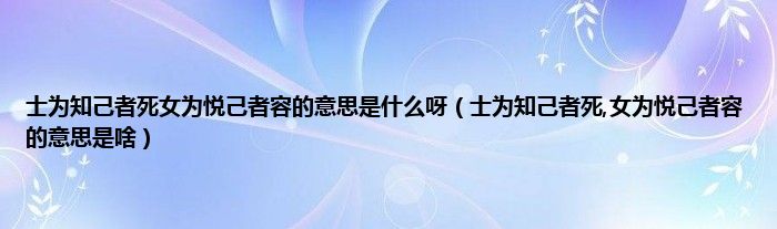 大家好,小科来为大家解答以上问题。士为知己者死女为悦己者容的意思是什么呀,士为知己者死,女为悦己者容的意思是啥很多人还不知道,现在让我们一起来看看吧!
