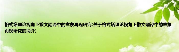 本文关于格式塔理论视角下散文翻译中的意象再现研究的简介就讲解完毕,希望对大家有所帮助。