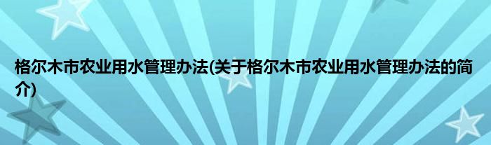 本文关于格尔木市农业用水管理办法的简介就讲解完毕,希望对大家有所帮助。