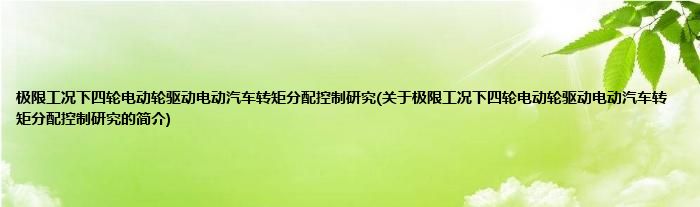 大家好,极限工况下四轮电动轮驱动电动汽车转矩分配控制研究,关于极限工况下四轮电动轮驱动电动汽车转矩分配控制研究的简介很多人还不知道,现在让我们一起来看看吧!