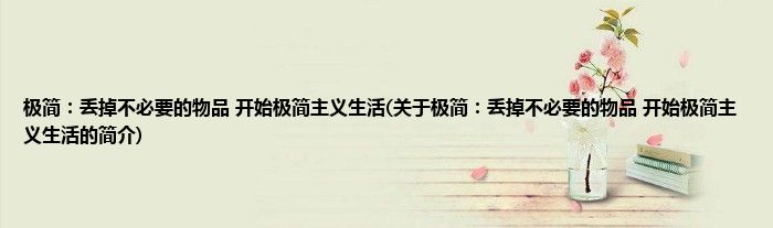本文关于极简:丢掉不必要的物品,开始极简主义生活的简介就讲解完毕,希望对大家有所帮助。