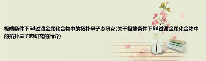 本文关于极端条件下5d过渡金属化合物中的拓扑量子态研究的简介就讲解完毕,希望对大家有所帮助。