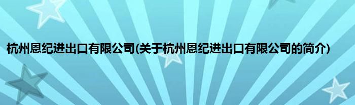 本文关于杭州恩纪进出口有限公司的简介就讲解完毕,希望对大家有所帮助。