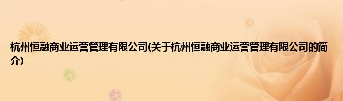 本文关于杭州恒融商业运营管理有限公司的简介就讲解完毕,希望对大家有所帮助。