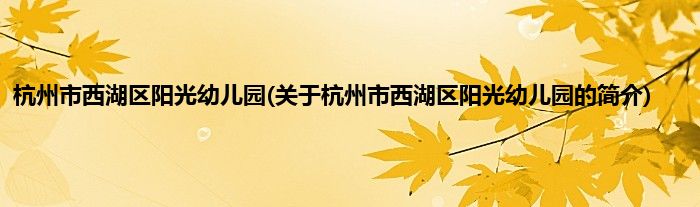 本文关于杭州市西湖区阳光幼儿园的简介就讲解完毕,希望对大家有所帮助。