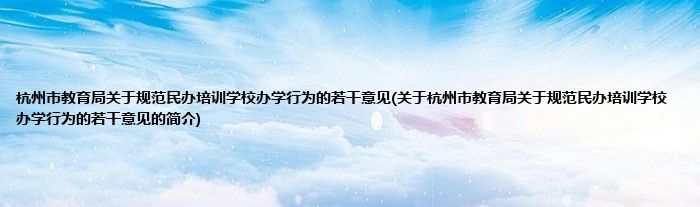 大家好,杭州市教育局关于规范民办培训学校办学行为的若干意见,关于杭州市教育局关于规范民办培训学校办学行为的若干意见的简介很多人还不知道,现在让我们一起来看看吧!