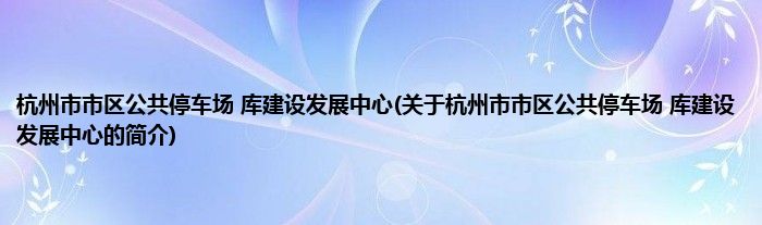 1、 杭州市市区公共停车场(库)建设发展中心是杭州市的一个组织机构。