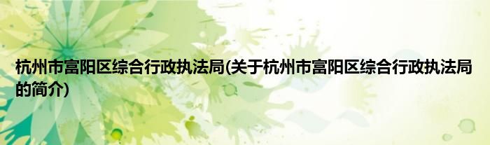 本文关于杭州市富阳区综合行政执法局的简介就讲解完毕,希望对大家有所帮助。