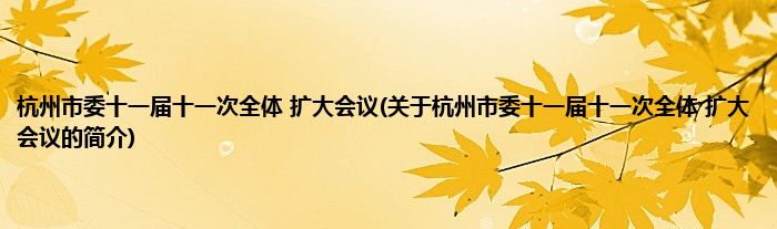 本文关于杭州市委十一届十一次全体 扩大会议的简介就讲解完毕,希望对大家有所帮助。
