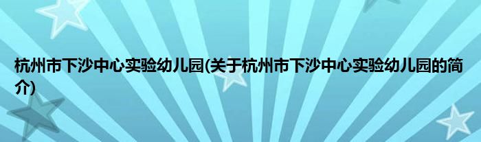 本文关于杭州市下沙中心实验幼儿园的简介就讲解完毕,希望对大家有所帮助。