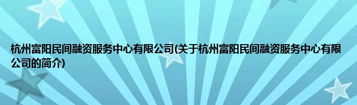 本文关于杭州富阳民间融资服务中心有限公司的简介就讲解完毕,希望对大家有所帮助。