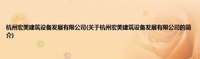 本文关于杭州宏美建筑设备发展有限公司的简介就讲解完毕,希望对大家有所帮助。