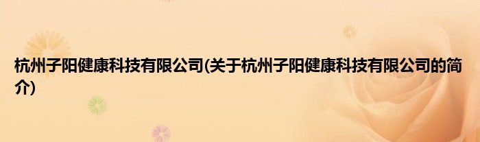 本文关于杭州子阳健康科技有限公司的简介就讲解完毕,希望对大家有所帮助。