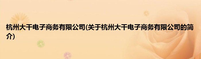 本文关于杭州大干电子商务有限公司的简介就讲解完毕,希望对大家有所帮助。